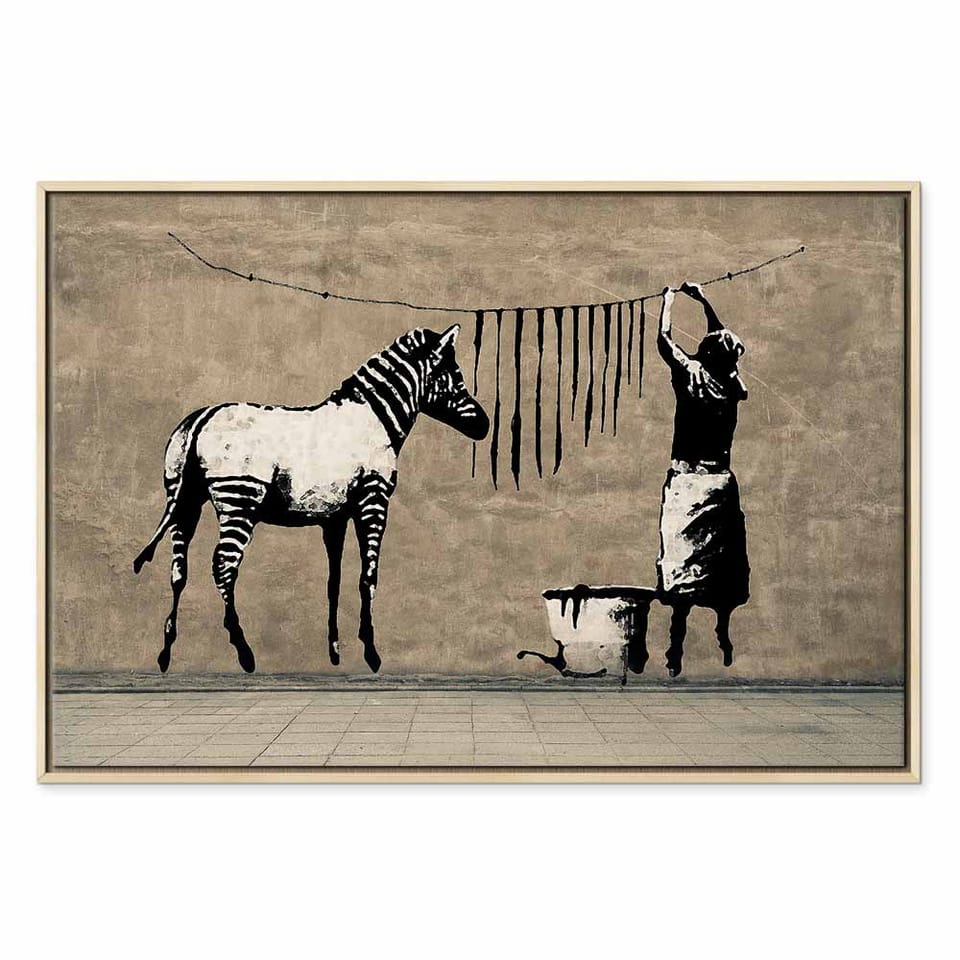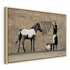 Obraz - Banksy: Pranie zebry na betonie (1-częściowy) szeroki rozmiar 90x60, wykończenie W ramie drewnianej naturalnej
