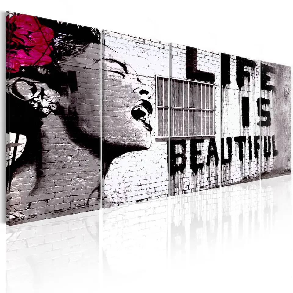 Obraz - Banksy: Życie jest piękne rozmiar 200x80, wykończenie Premium Print