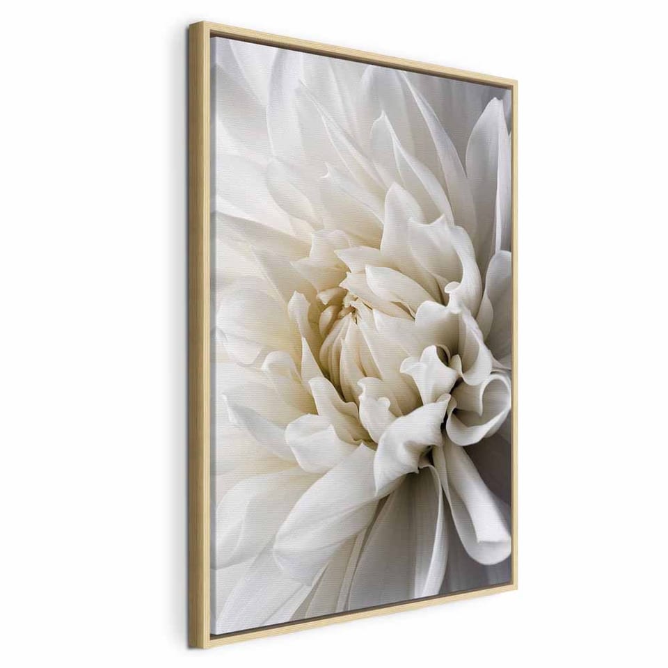 Obraz - Biała dalia rozmiar 40x60, wykończenie W ramie drewnianej naturalnej