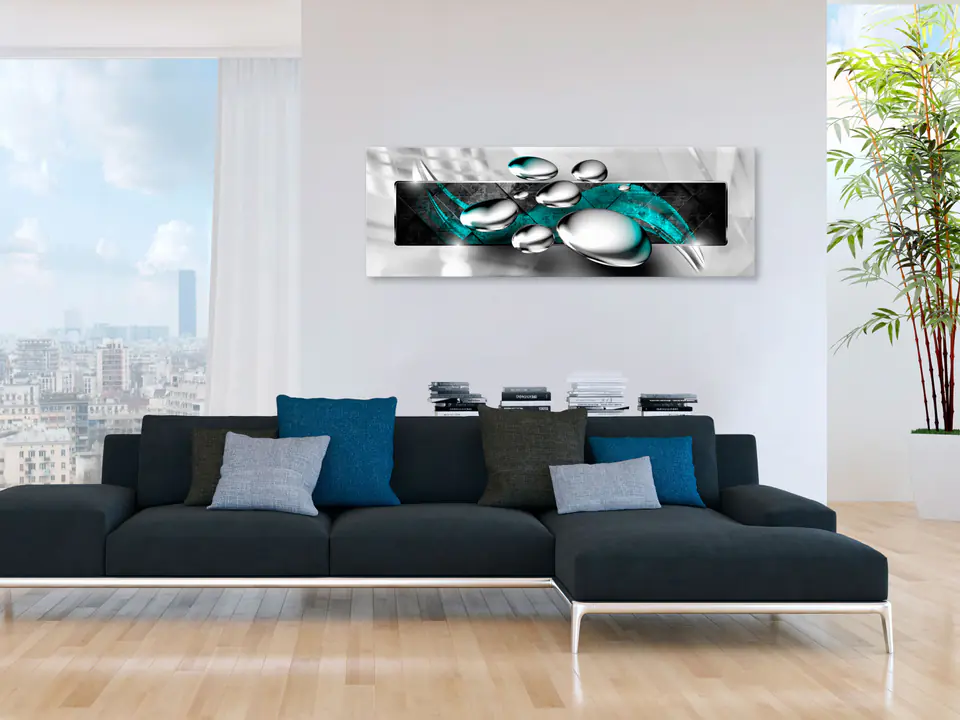 Obraz - Błyszczące kamienie (1-częściowy) wąski turkusowy rozmiar 135x45, wykończenie Na płótnie włoskim