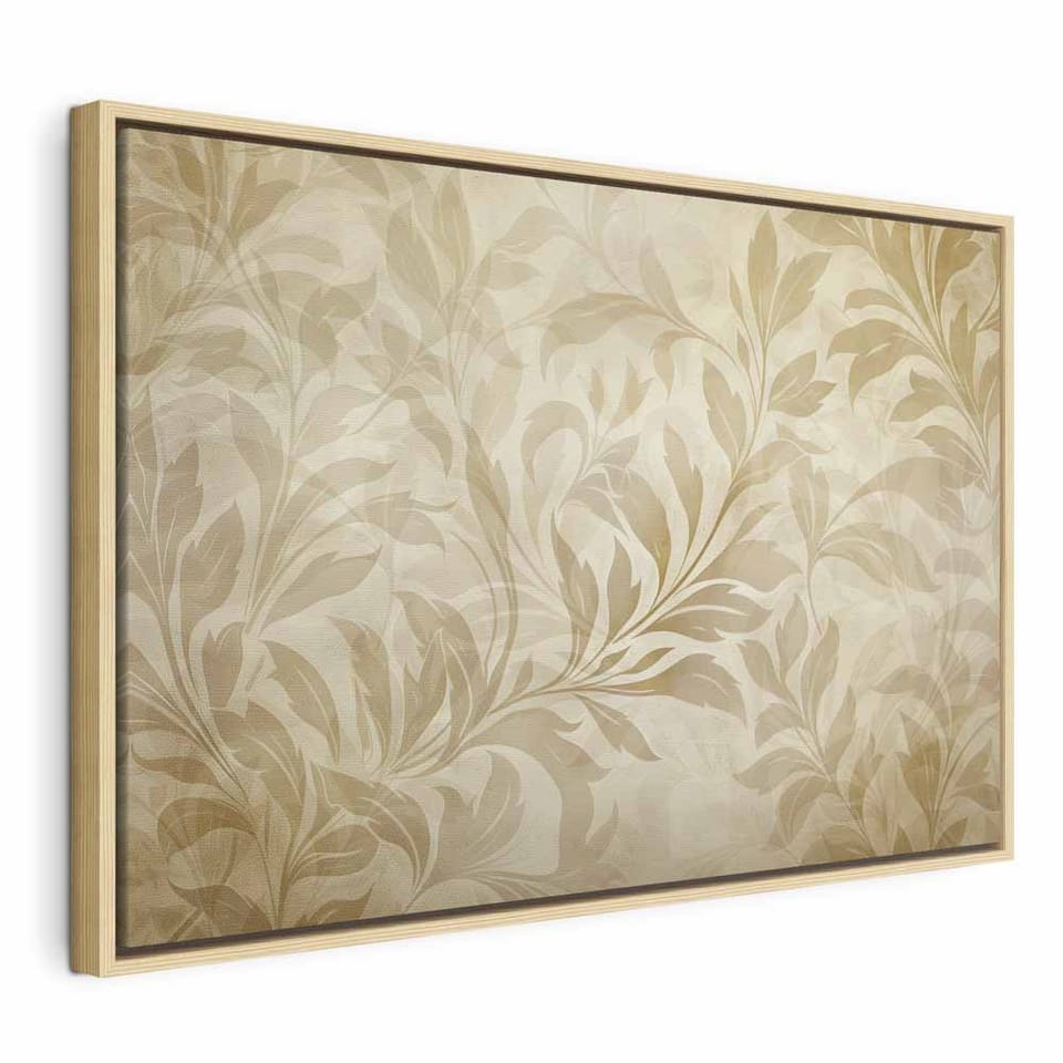 Obraz - Botaniczny motyw z listkami i pnączami w kolorach piaskowych rozmiar 60x40, wykończenie W ramie drewnianej naturalnej