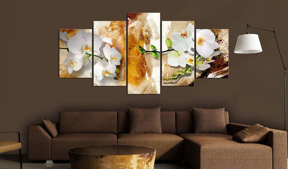 Obraz - Brązowa farba i storczyk rozmiar 225x112.5, wykończenie Na płótnie włoskim