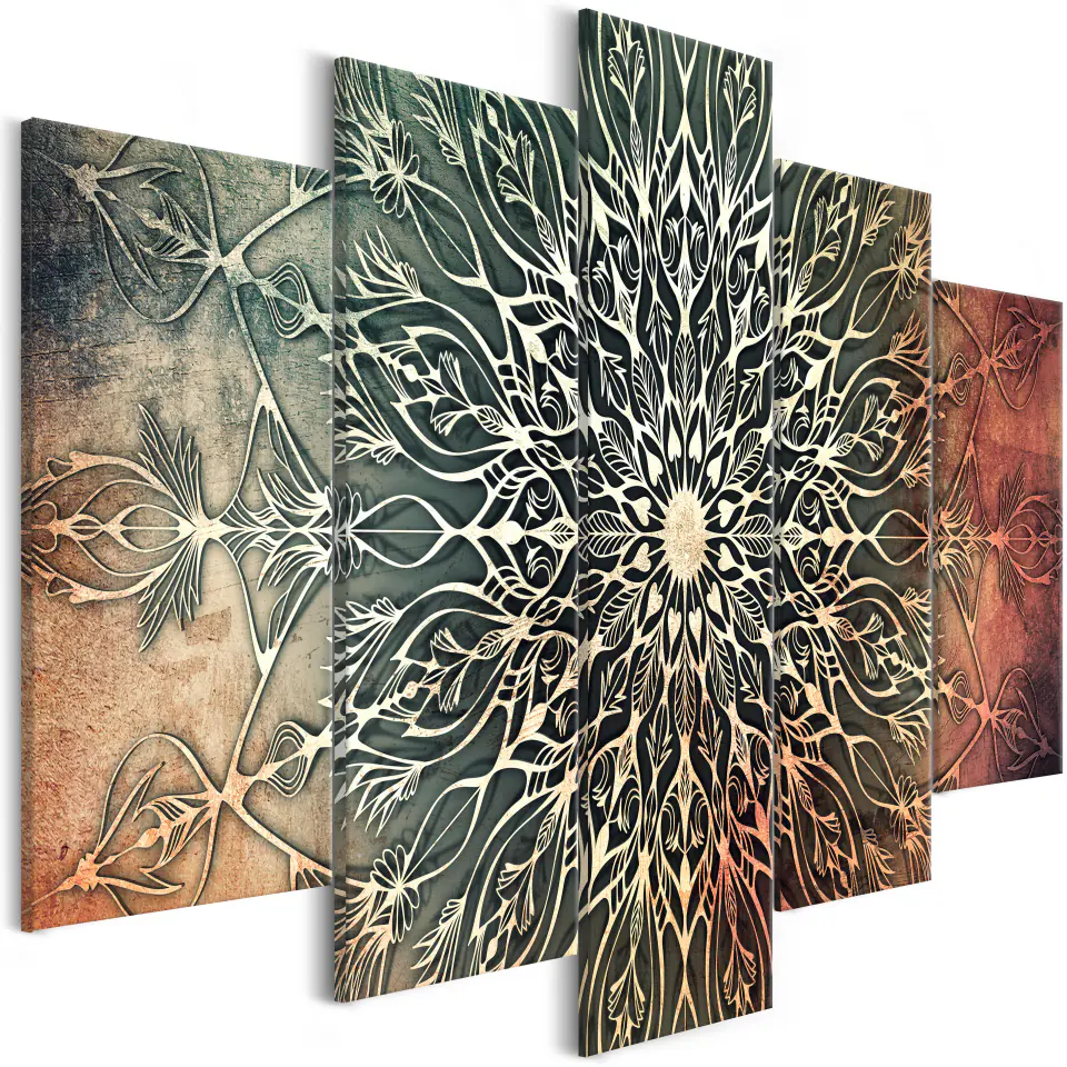 Obraz - Centrum (5-częściowy) szeroki zielony rozmiar 100x50, wykończenie Premium Print