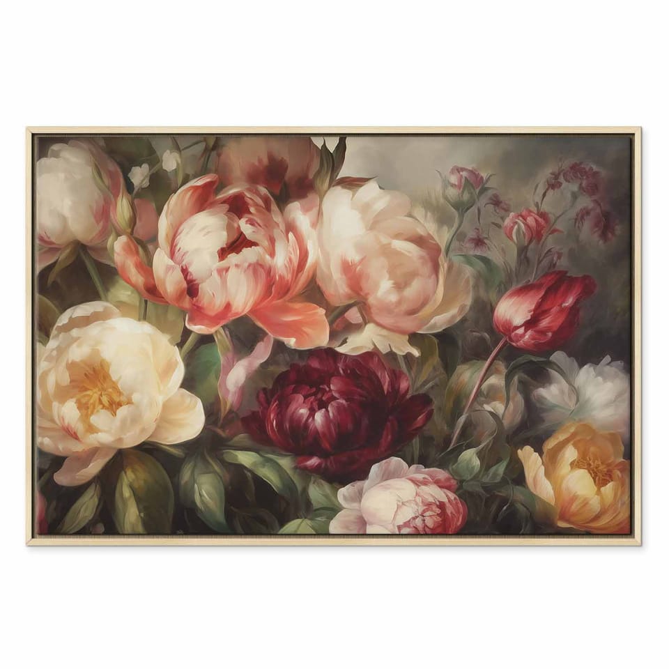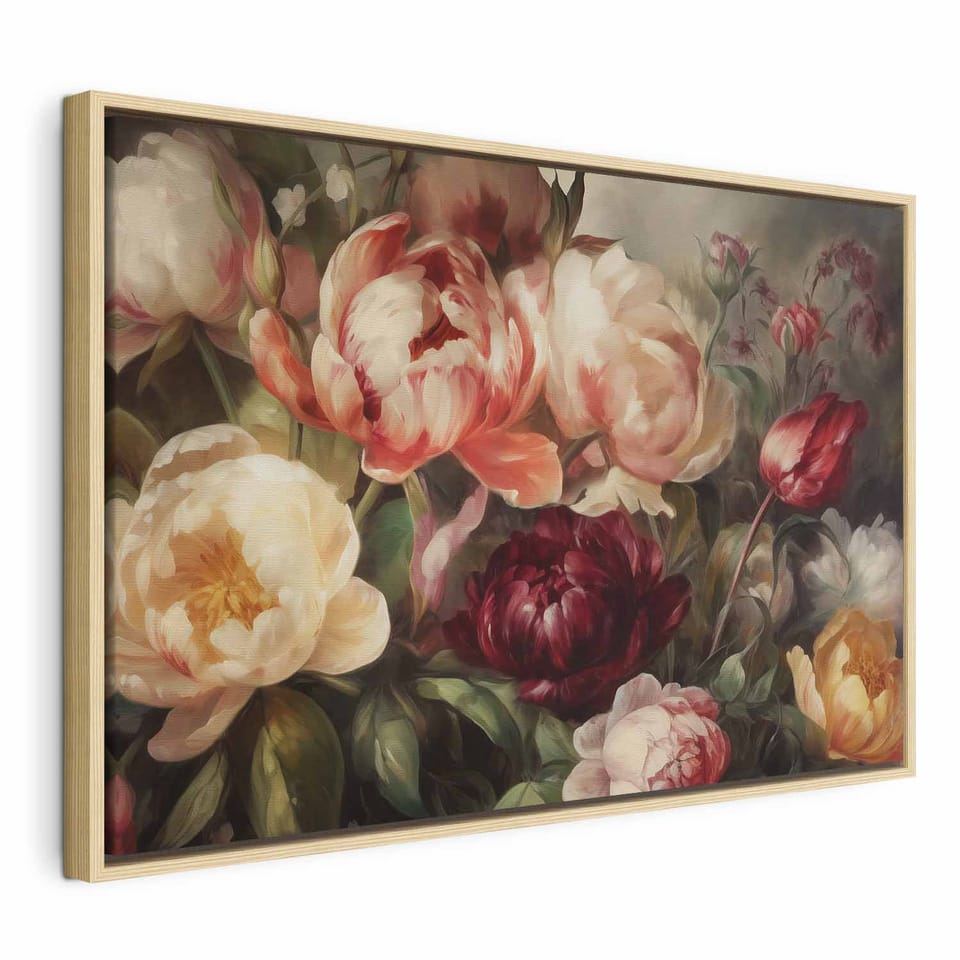 Obraz - Charyzmatyczne piwonie rozmiar 90x60, wykończenie W ramie drewnianej naturalnej
