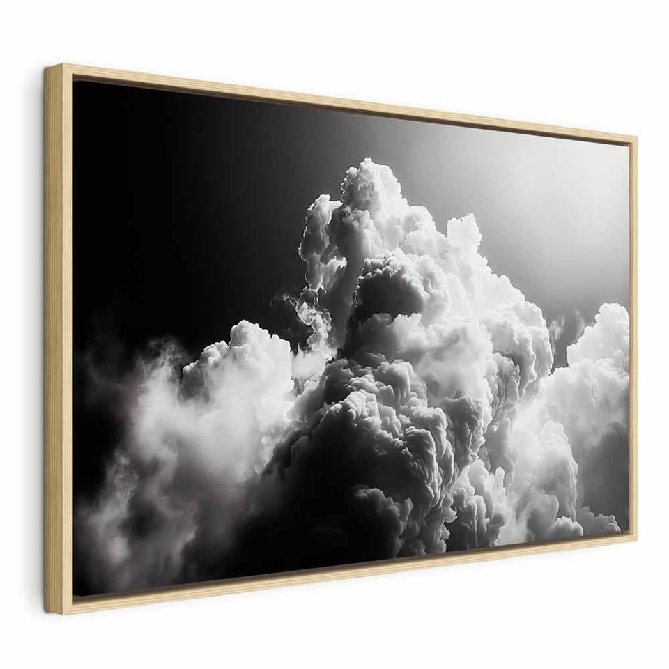 Obraz - Chmury jak z marzeń: Pozwól słońcu rozświetlić twój dzień – Wizualna Uczta rozmiar 90x60, wykończenie W ramie drewnianej naturalnej