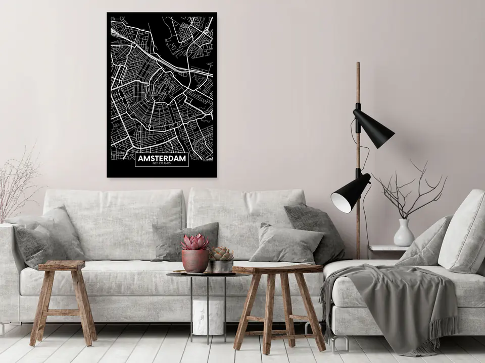 Obraz - Ciemna mapa Amsterdamu (1-częściowy) pionowy rozmiar 80x120, wykończenie Premium Print