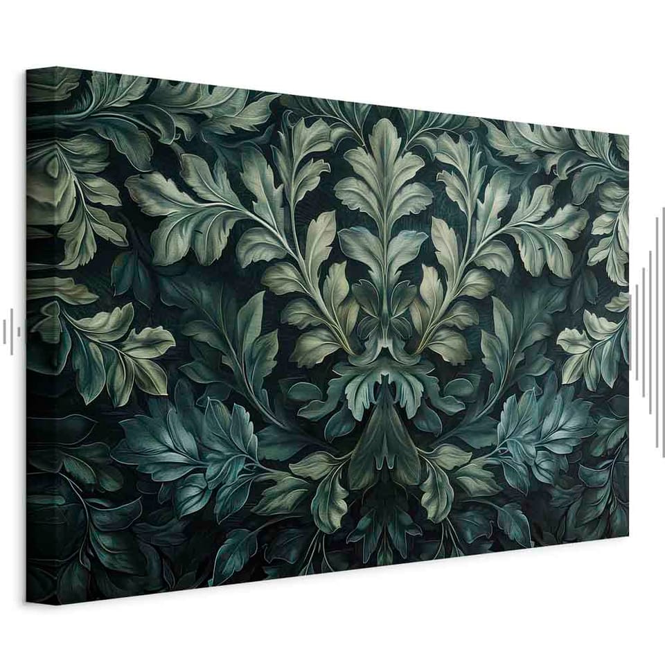 Obraz - Ciemnozielone wiktoriańskie liście: botaniczna rzeźbiona kompozycja rozmiar 90x60, wykończenie Akustyczny