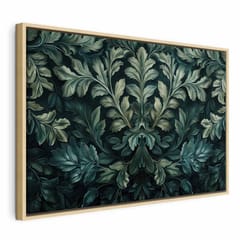 Obraz - Ciemnozielone wiktoriańskie liście: botaniczna rzeźbiona kompozycja rozmiar 90x60, wykończenie W ramie drewnianej naturalnej