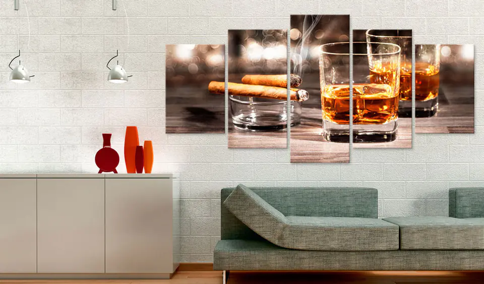 Obraz - Cygaro i whisky rozmiar 225x112.5, wykończenie Na płótnie włoskim