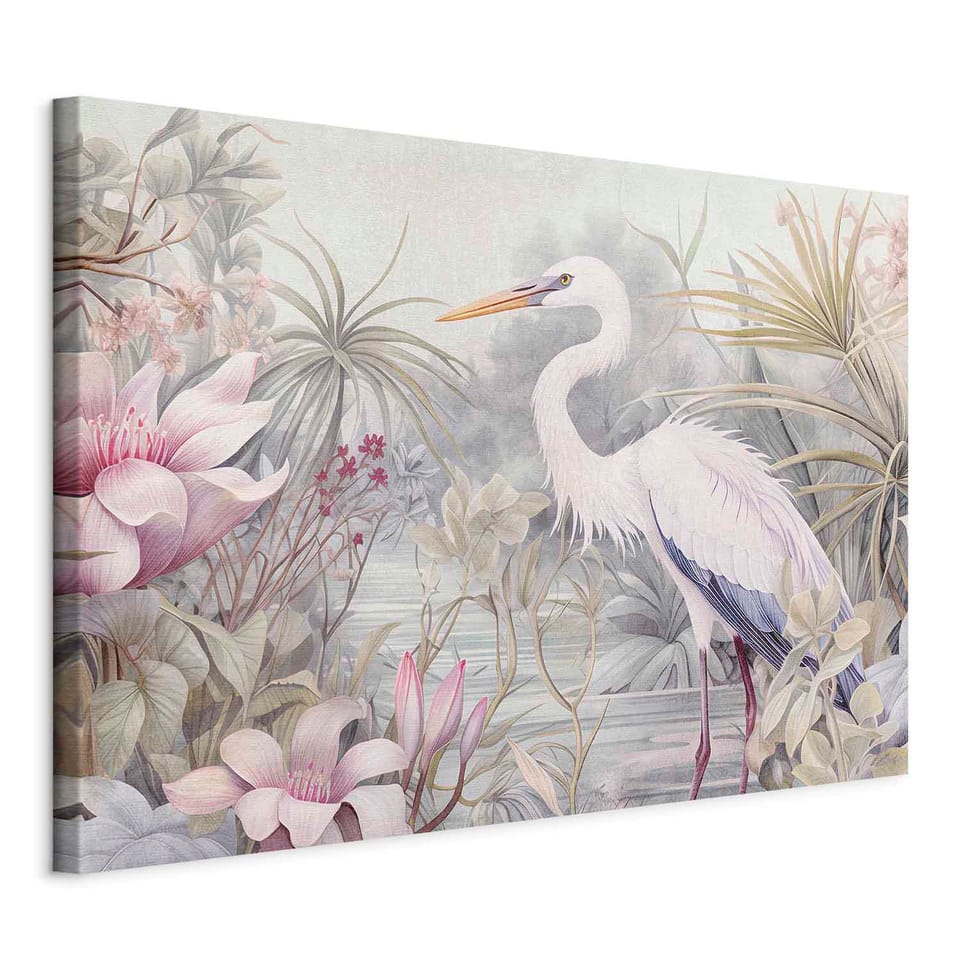 Obraz - Czapla brodząca w stawie - ilustracja w jasnej kolorystyce rozmiar 30x20, wykończenie Standard