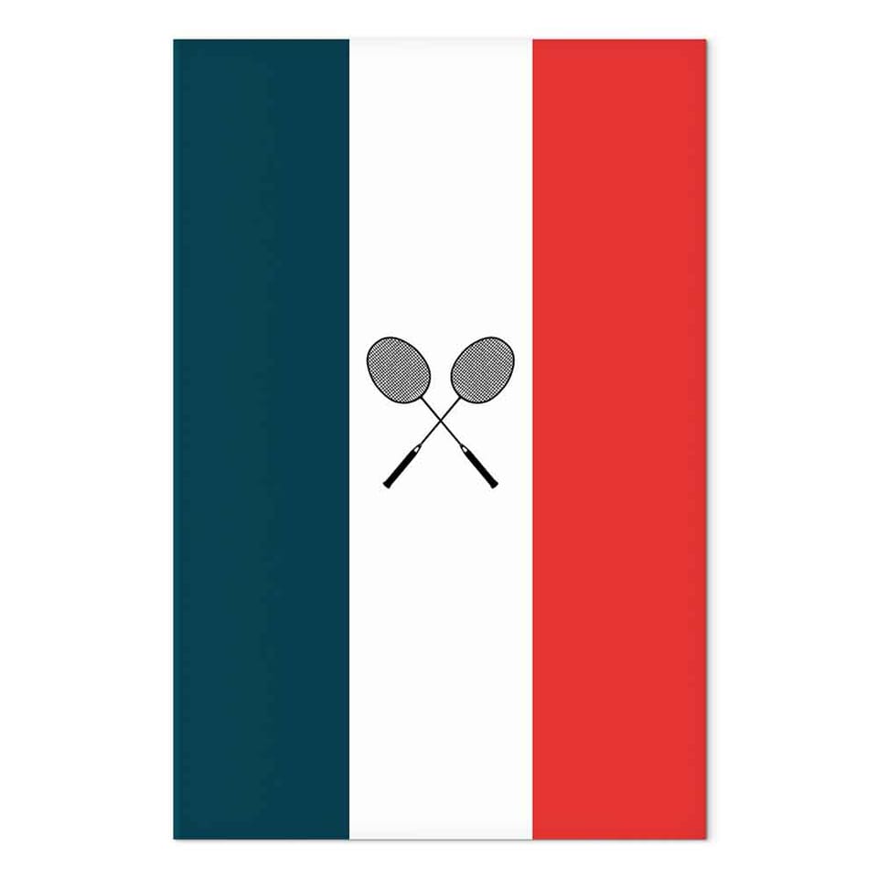Obraz - Czarne rakietki do badmintona na tle flagi Francji rozmiar 60x90, wykończenie Premium Print