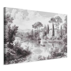 Obraz - Czarno-biały pejzaż vintage retro widok na staw z łódką rozmiar 90x60, wykończenie Standard