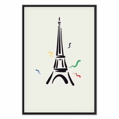 Obraz - Czarny graficzny rysunek wieży Eiffla na kremowym tle rozmiar 40x60, wykończenie W ramie drewnianej czarnej