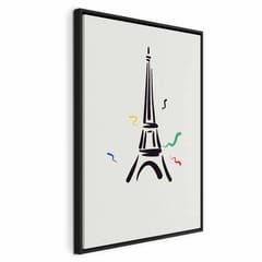 Obraz - Czarny graficzny rysunek wieży Eiffla na kremowym tle rozmiar 60x90, wykończenie W ramie drewnianej czarnej