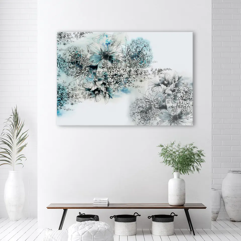 Obraz Deco Panel, Błękitne kwiaty abstrakcja Rozmiar 120x80