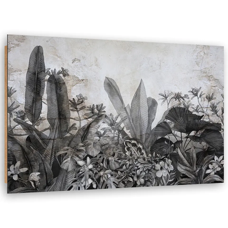 Obraz Deco Panel, Czarno białe liście na tle betonu (Rozmiar 100x70)
