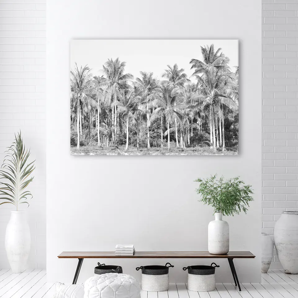 Obraz Deco Panel, Czarno białe palmy w dżungli Rozmiar 120x80