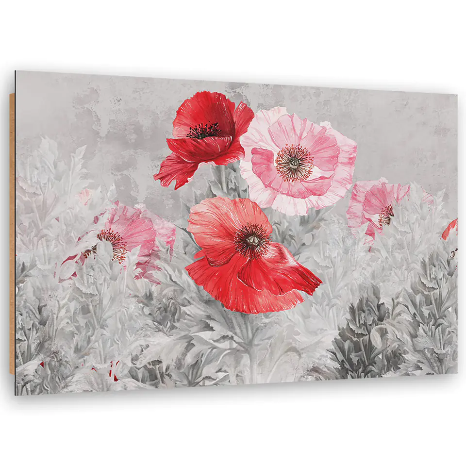 Obraz Deco Panel, Czerwone maki na szarej łące Rozmiar 90x60