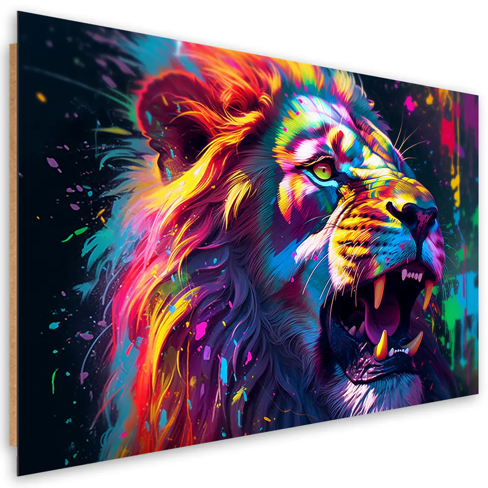 Obraz deco panel, Lew Neon Abstrakcja Rozmiar 90x60