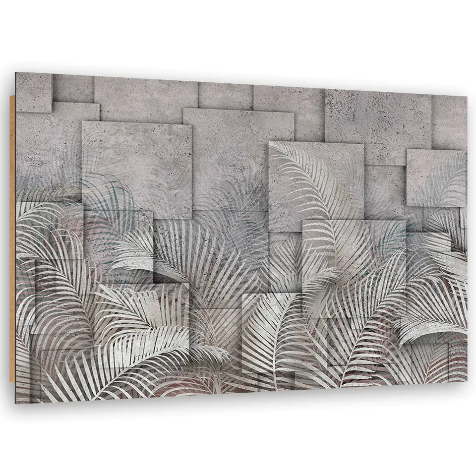Obraz Deco Panel, Liście 3D na tle imitującym beton Rozmiar 100x70