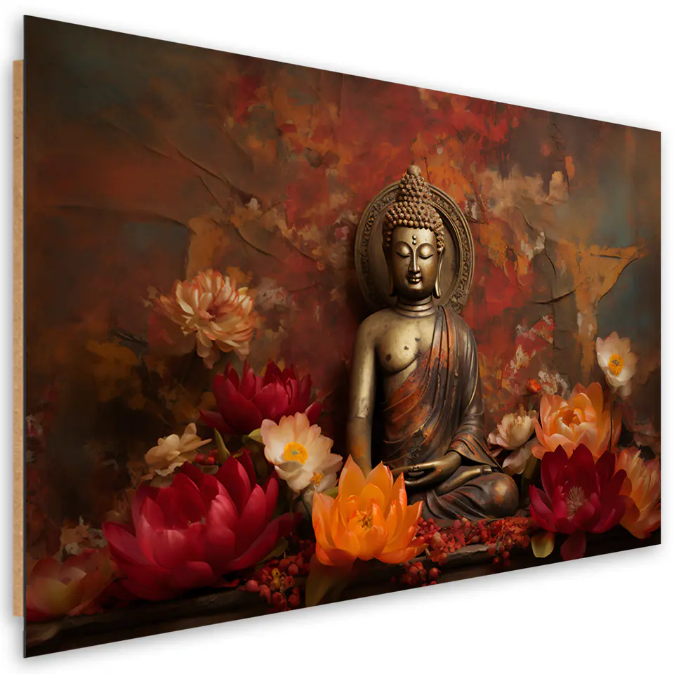 Obraz Deco Panel, Medytuący Budda i kolorowe kwiaty Rozmiar 120x80