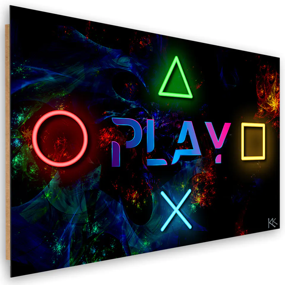 Obraz Deco Panel, Napis play i przyciski do kontrolera (Rozmiar 100x70)