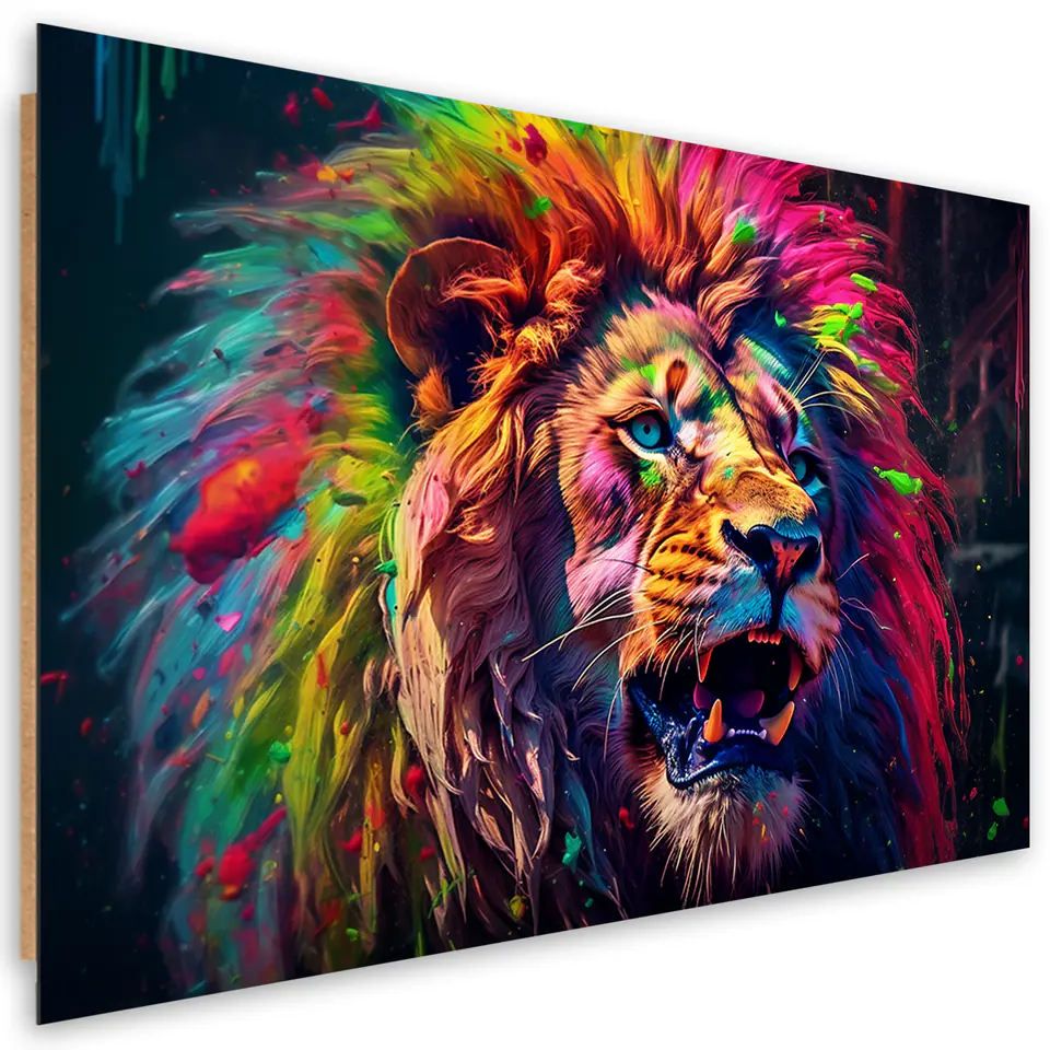 Obraz deco panel, Neon Lew Kolorowy (Rozmiar 100x70)