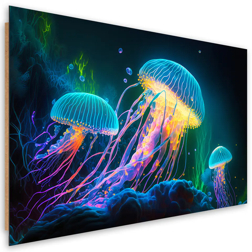 Obraz deco panel, Neonowe meduzy pod wodą Rozmiar 60x40