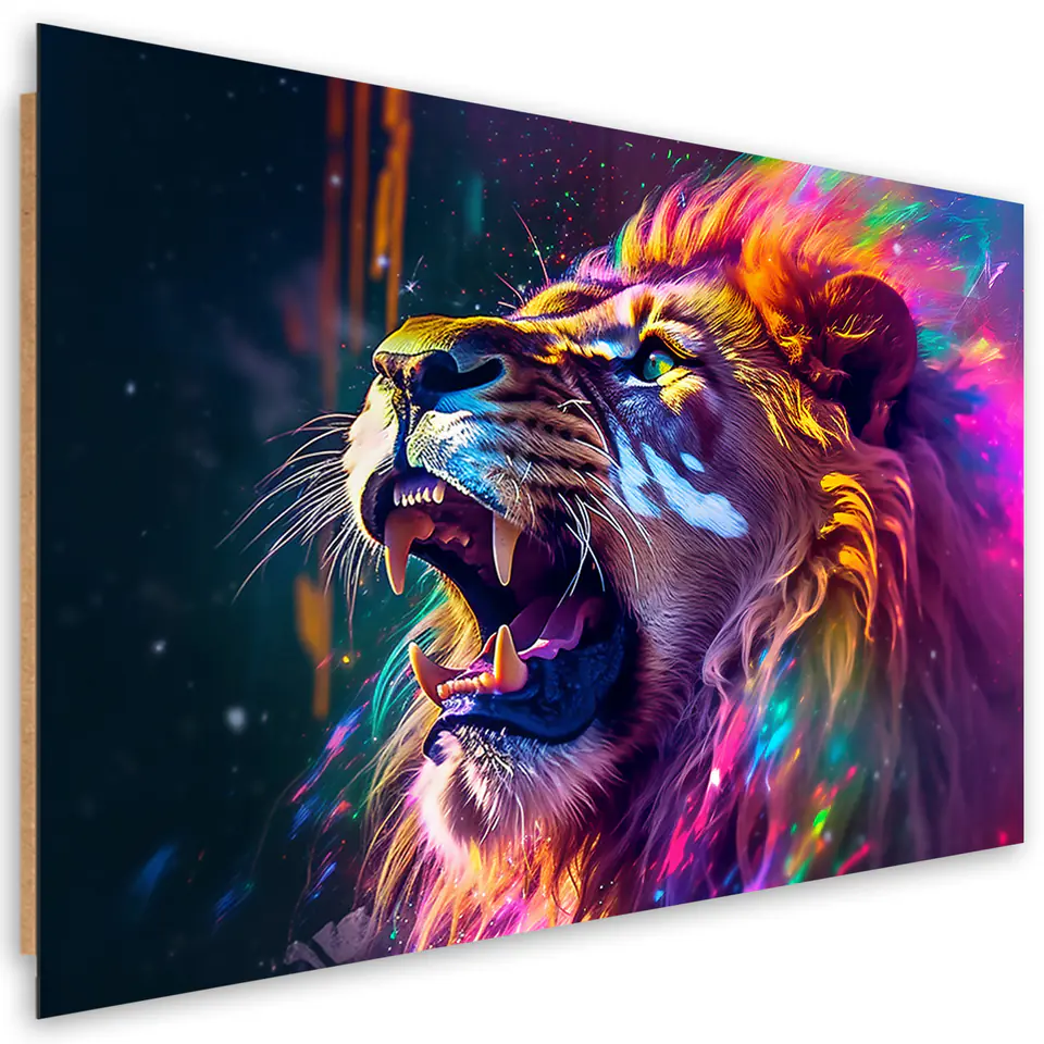 Obraz deco panel, Ryk Lwa Neon Abstrakcja Rozmiar 120x80