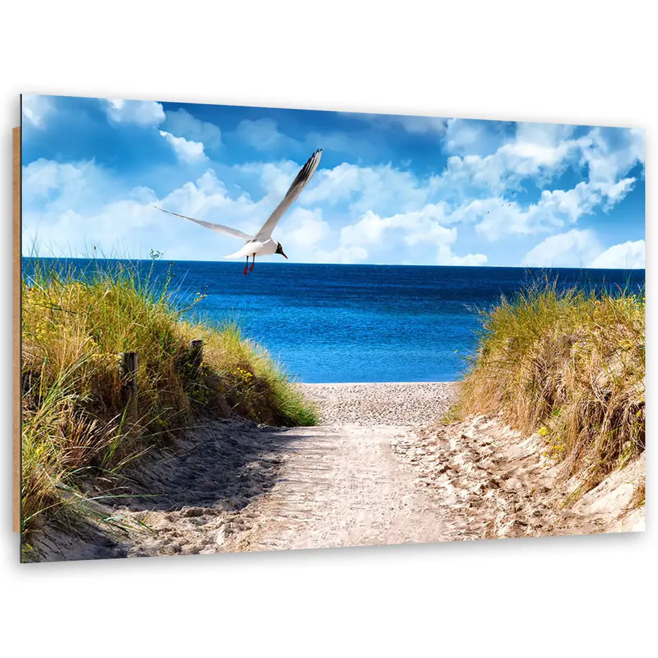 Obraz Deco Panel, Ścieżka na plażę i mewa (Rozmiar 90x60)