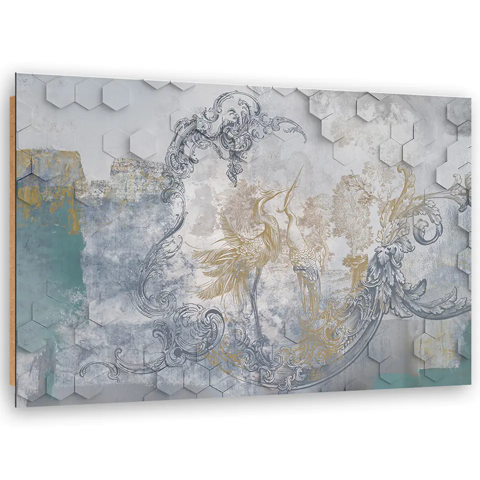 Obraz Deco Panel, Szare ptaki na geometrycznym tle Rozmiar 100x70