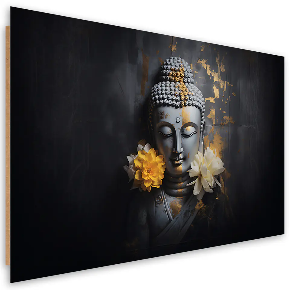 Obraz Deco Panel,  Szary budda i kwiaty (Rozmiar 60x40)