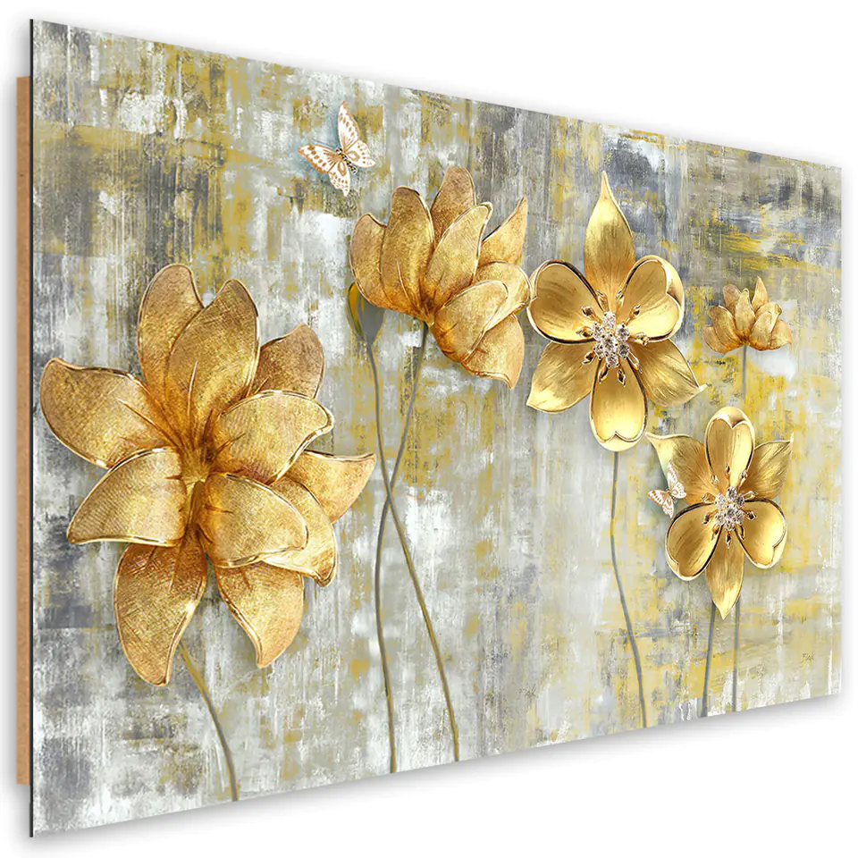 Obraz Deco Panel, Złote kwiaty i motyle Rozmiar 120x80
