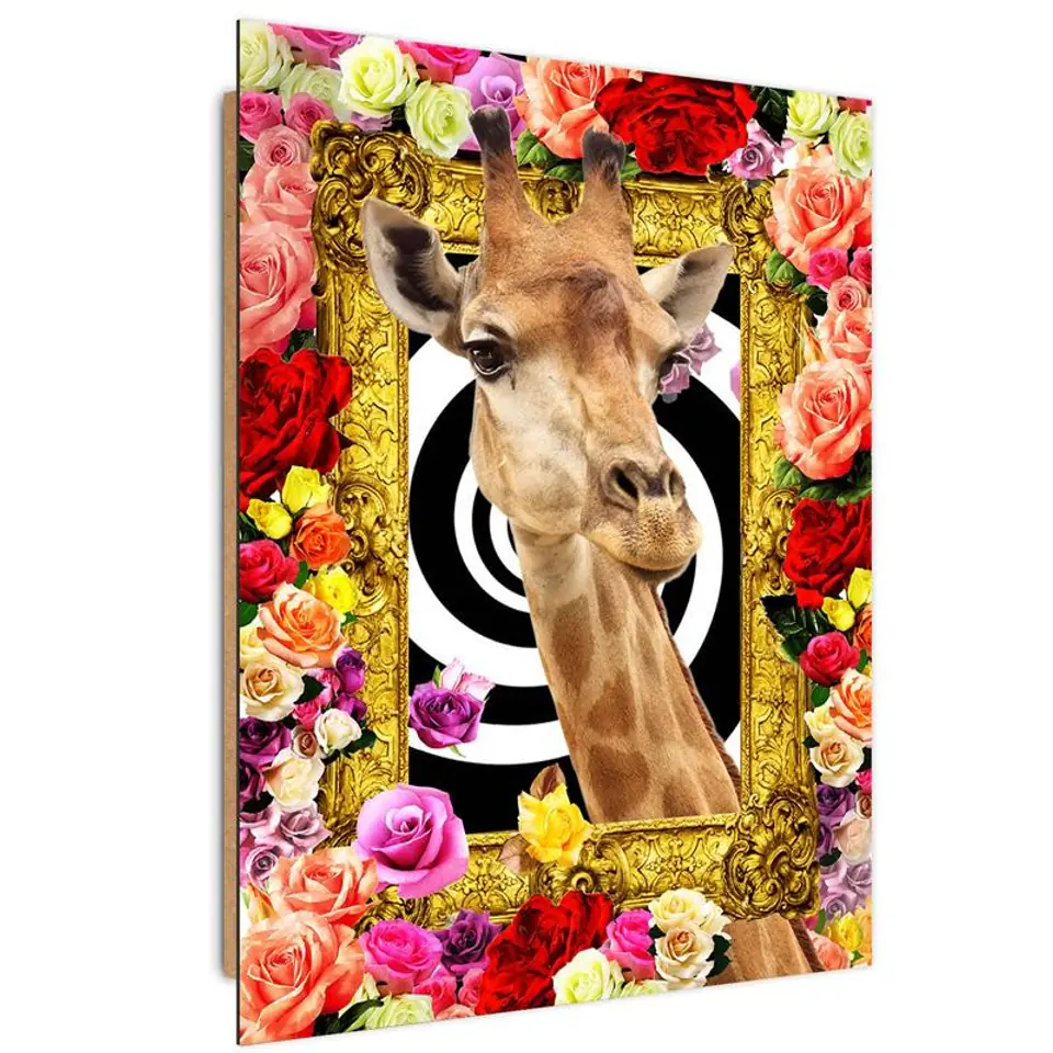 Obraz Deco Panel, Żyrafa i kolorowe róże Rozmiar 70x100