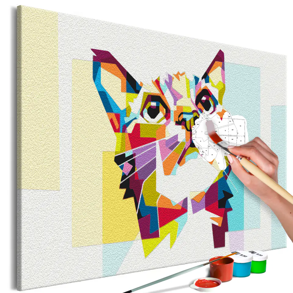 Rozbudź kreatywność! Szukasz sposobu na kreatywny relaks? Masz ochotę na oryginalną przygodę, do której mógłbyś zaprosić również najbliższych? A przy tym rozbudzić kreatywność i poczuć się jak prawdziwy artysta? Nic prostszego! Odkryj najnowszy hit wśród oryginalnych hobby - Malowanie po numerach. Różnokolorowy wzór do malowania po numerkach "Obraz do samodzielnego malowania - Kot i figury" to niezwykły pomysł na spędzanie wolnego czasu. Malowanka po numerach "Obraz do samodzielnego malowania - Kot i figury" to aktywność dla osób w każdym wieku. Idealna dla malarzy amatorów! Po namalowaniu taki malunek świetnie sprawdzi się jako ozdoba ścienna.