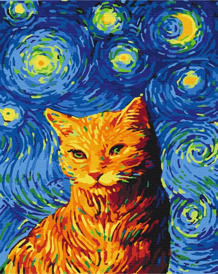 Rozbudź kreatywność!Szukasz sposobu na kreatywny relaks? Masz ochotę na oryginalną przygodę, do której mógłbyś zaprosić również najbliższych? A przy tym rozbudzić kreatywność i poczuć się jak prawdziwy artysta? Nic prostszego! Odkryj najnowszy hit wśród oryginalnych hobby - Malowanie po numerach. Różnokolorowy wzór do malowania po numerkach "Obraz do samodzielnego malowania - Kot van Gogha" to niezwykły pomysł na spędzanie wolnego czasu. Malowanka po numerach "Obraz do samodzielnego malowania - Kot van Gogha" to aktywność dla osób w każdym wieku. Idealna dla malarzy amatorów! Po namalowaniu taki malunek świetnie sprawdzi się jako ozdoba ścienna.
