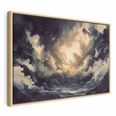 Obraz - Epicka gra światła: Słońce walczące o dominację nad chmurami rozmiar 60x40, wykończenie W ramie drewnianej naturalnej