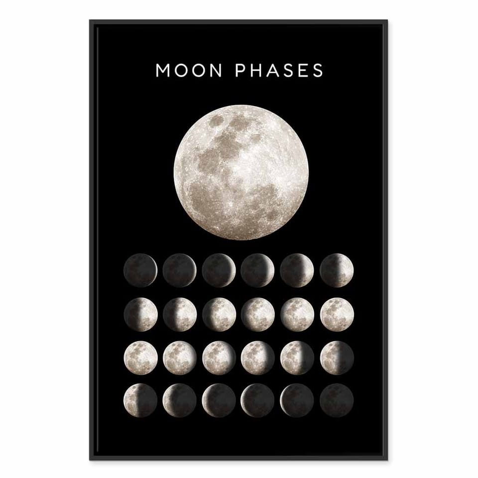 Obraz - Fazy księżyca (1-częściowy) pionowy rozmiar 80x120, wykończenie W ramie drewnianej czarnej