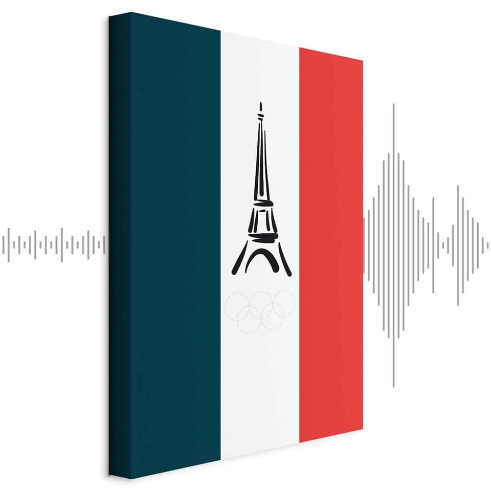 Obraz - Flaga Francji z graficzną wieżą Eiffla rozmiar 60x90, wykończenie Akustyczny