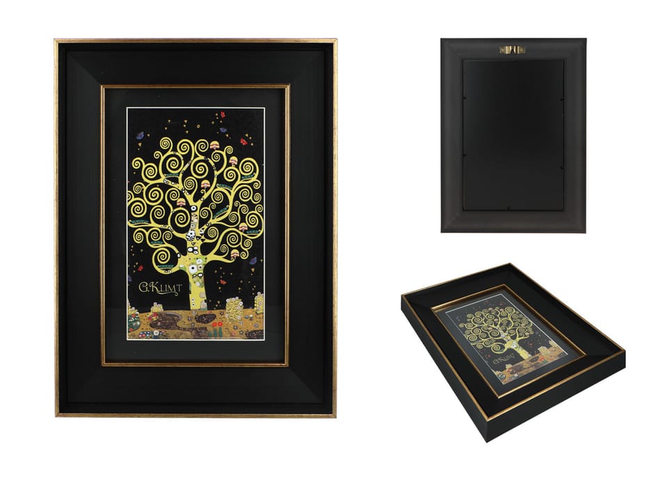 Obraz Drzewo Życia G.Klimta to ikoniczne dzieło, które przedstawia stylizowane, spiralnie ułożone gałęzie drzewa, symbolizujące życie i więzi rodzinne. Intensywne złote i brązowe kolory oraz charakterystyczne ornamenty nadają elegancji i głębi.