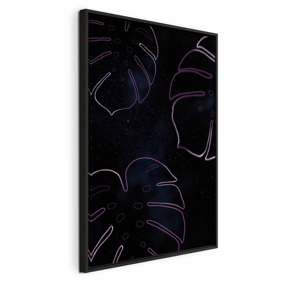 Obraz - Galaktyczna monstera (1-częściowy) pionowy rozmiar 60x90, wykończenie W ramie drewnianej czarnej