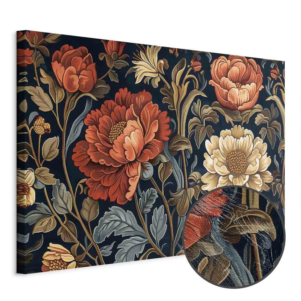 Obraz - Gobelinowe wielkie kwiaty retro motyw florystyczny w stylu kilimu rozmiar 30x20, wykończenie Premium Print