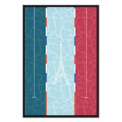 Obraz - Graficzna ilustracja basenu na tle flagi Francji rozmiar 80x120, wykończenie W ramie drewnianej czarnej