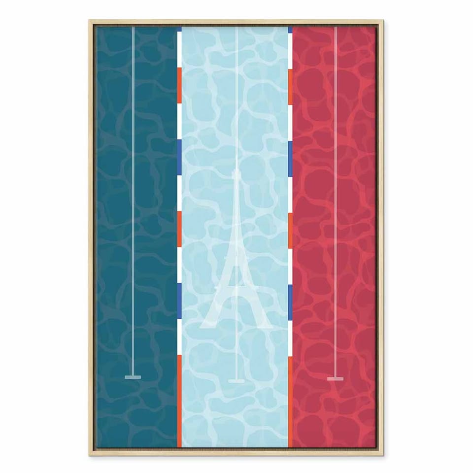 Obraz - Graficzna ilustracja basenu na tle flagi Francji rozmiar 80x120, wykończenie W ramie drewnianej naturalnej