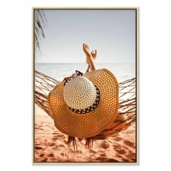 Obraz - Hamak na plaży (1-częściowy) pionowy rozmiar 60x90, wykończenie W ramie drewnianej naturalnej