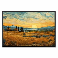 Obraz - Impresjonistyczne łany - namalowany złoty krajobraz z łanami zboża rozmiar 120x80, wykończenie W ramie drewnianej czarnej