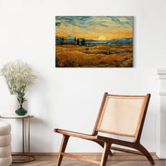Obraz - Impresjonistyczne łany - namalowany złoty krajobraz z łanami zboża rozmiar 60x40, wykończenie Akustyczny