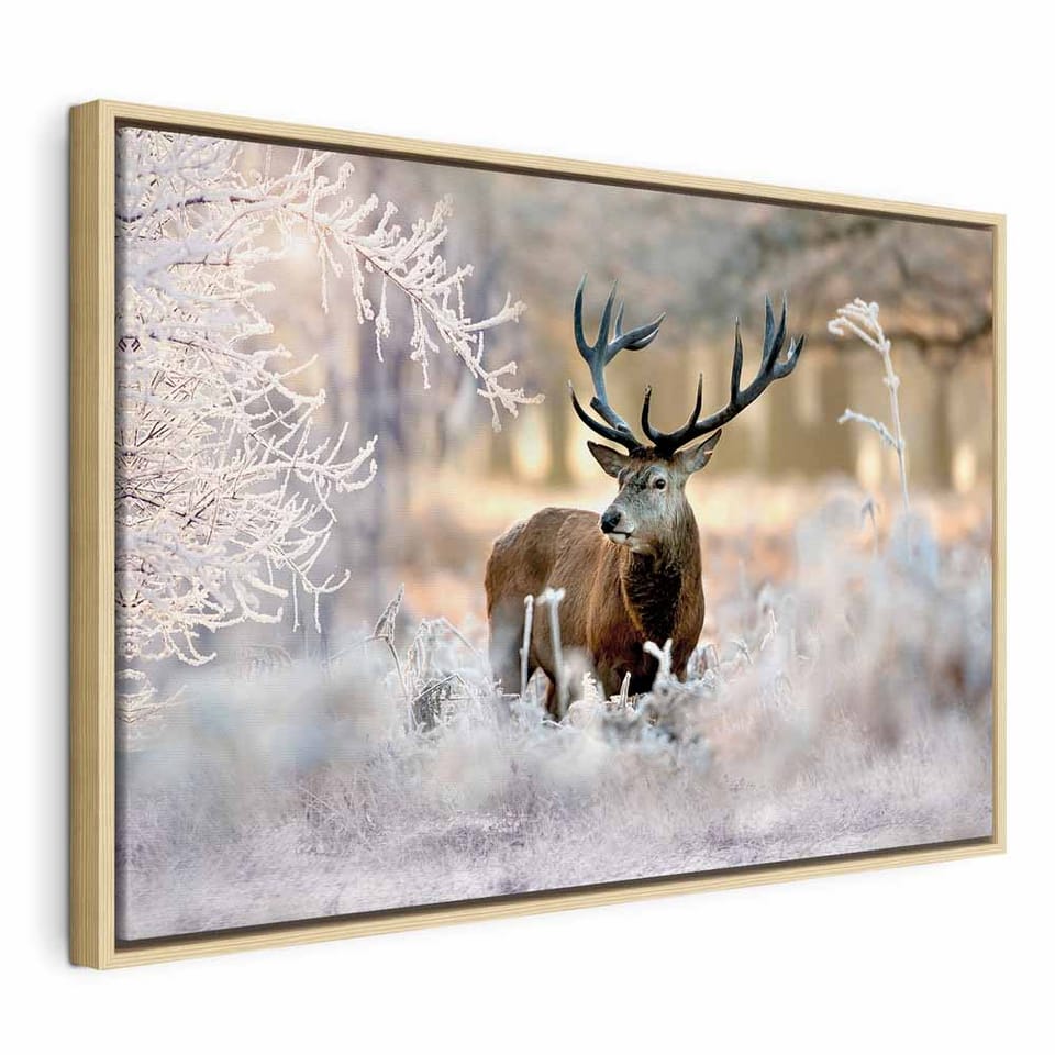 Obraz - Jeleń na mrozie rozmiar 120x80, wykończenie W ramie drewnianej naturalnej