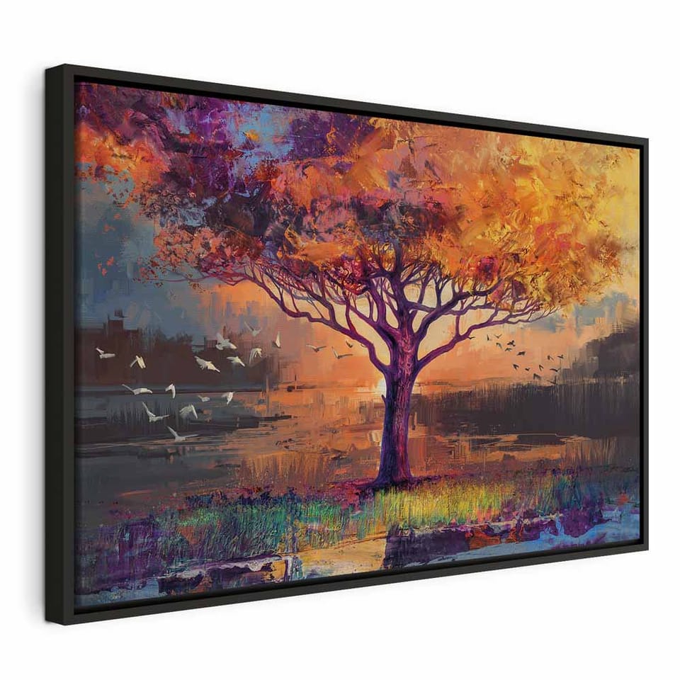 Obraz - Jesienne szkice (1-częściowy) szeroki rozmiar 90x60, wykończenie W ramie drewnianej czarnej