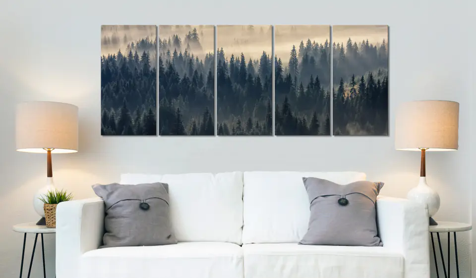 Obraz - Jodły we mgle rozmiar 200x80, wykończenie Standard